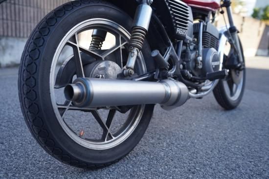 RG250Eはカスタムパーツのバリエーションが少ない為、皆様流用やワンオフ で製作した物等工夫されてカスタムされていると思うので、今回この様な形でチャンバー をご提供できる事を嬉しく思います。 古臭く仕上げてくれるヒヅキ のタレ管 ❗️是非一度手に取って感じて見て欲しいです。